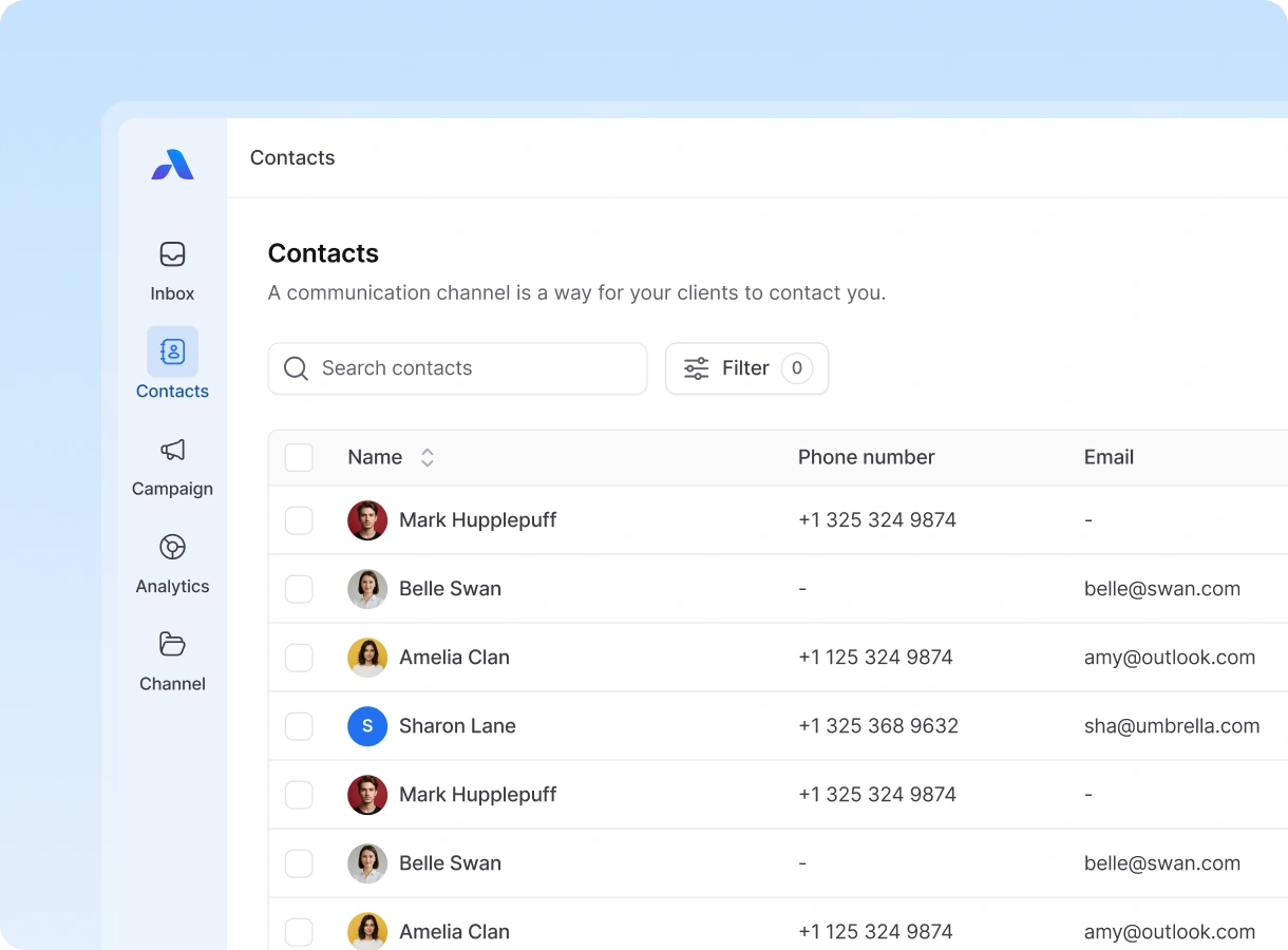 AirChannel.ai brings WhatsApp, Email, and customer chats together in a single view. Your team can collaborate seamlessly, respond faster, and keep every interaction organized with powerful built-in analytics.